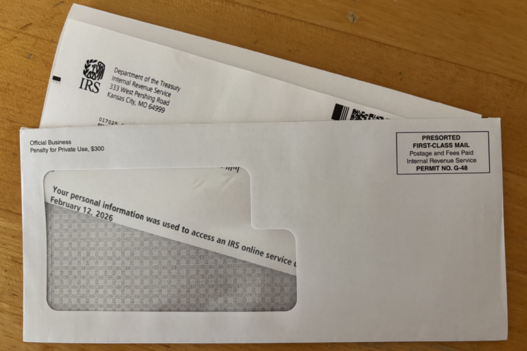 The notice, shown at the top of this post, was a CP303. That’s simply an alert from the IRS that my/the hubby’s personal information was used to access an IRS online service. Specifically, it was the new online account I/he created so we could more easily make online estimated (and usually annual filing season) tax payments.