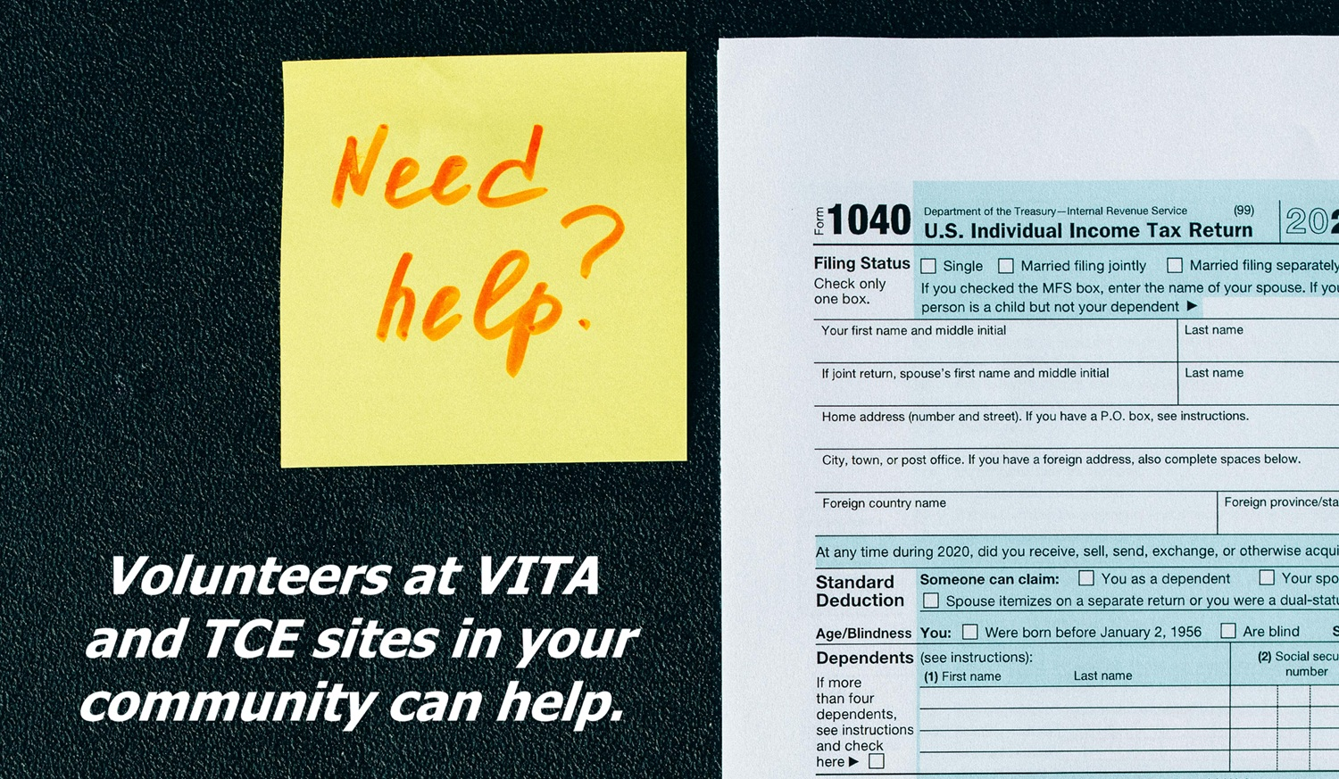 When taxes are too overwhelming, you might be able to get free tax help at a local VITA or TCE site.