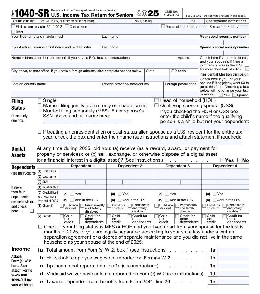 That age threshold applies to the 1040-SR. Taxpayers who were 65 or older last year can use the form. If you were born on Jan. 1, 1961, the IRS considers you to be age 65 at the end of 2025.