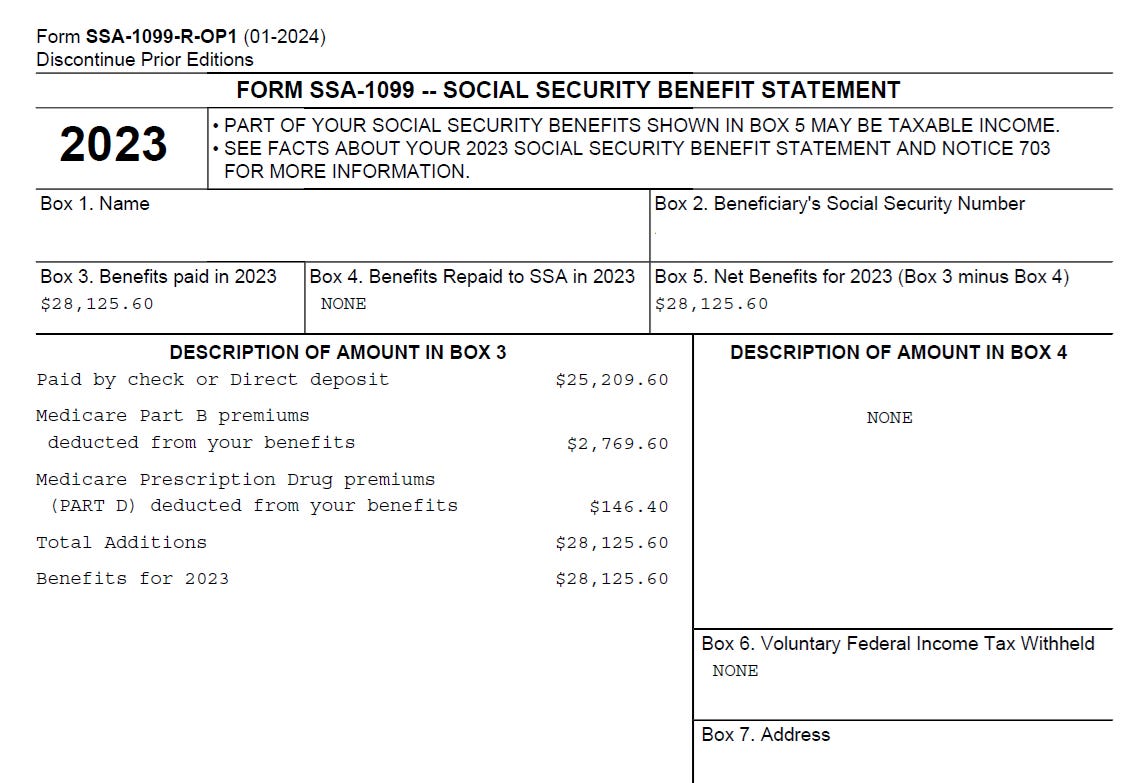 As the form excerpt example below shows, the SSA-1099 enters the amount of Social Security payments you received the previous year in box 5.